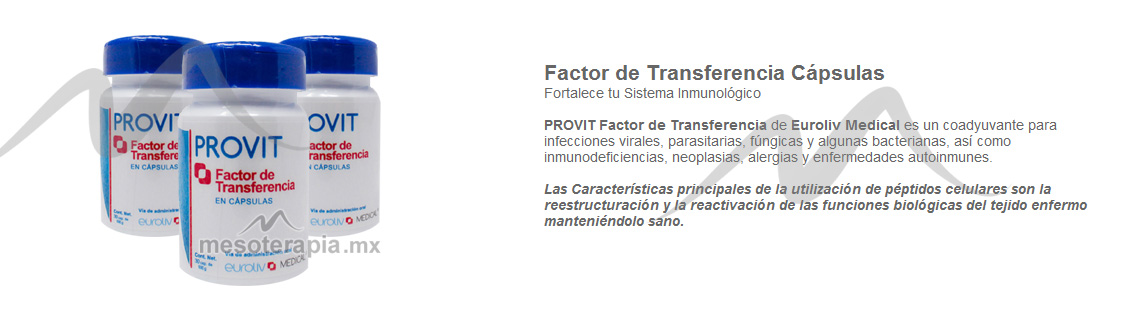 PROVIT Factor de Transferencia de Euroliv Medical es un coadyuvante para infecciones virales, parasitarias, fúngicas y algunas bacterianas, así como inmunodeficiencias, neoplasias, alergias y enfermedades autoinmunes.